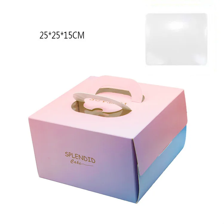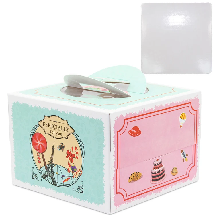 discount 9 Set 8 Inch Birthday Cake Box With Window Handle Kraft Paper Cheese Cake Boxes Wedding Party Cake